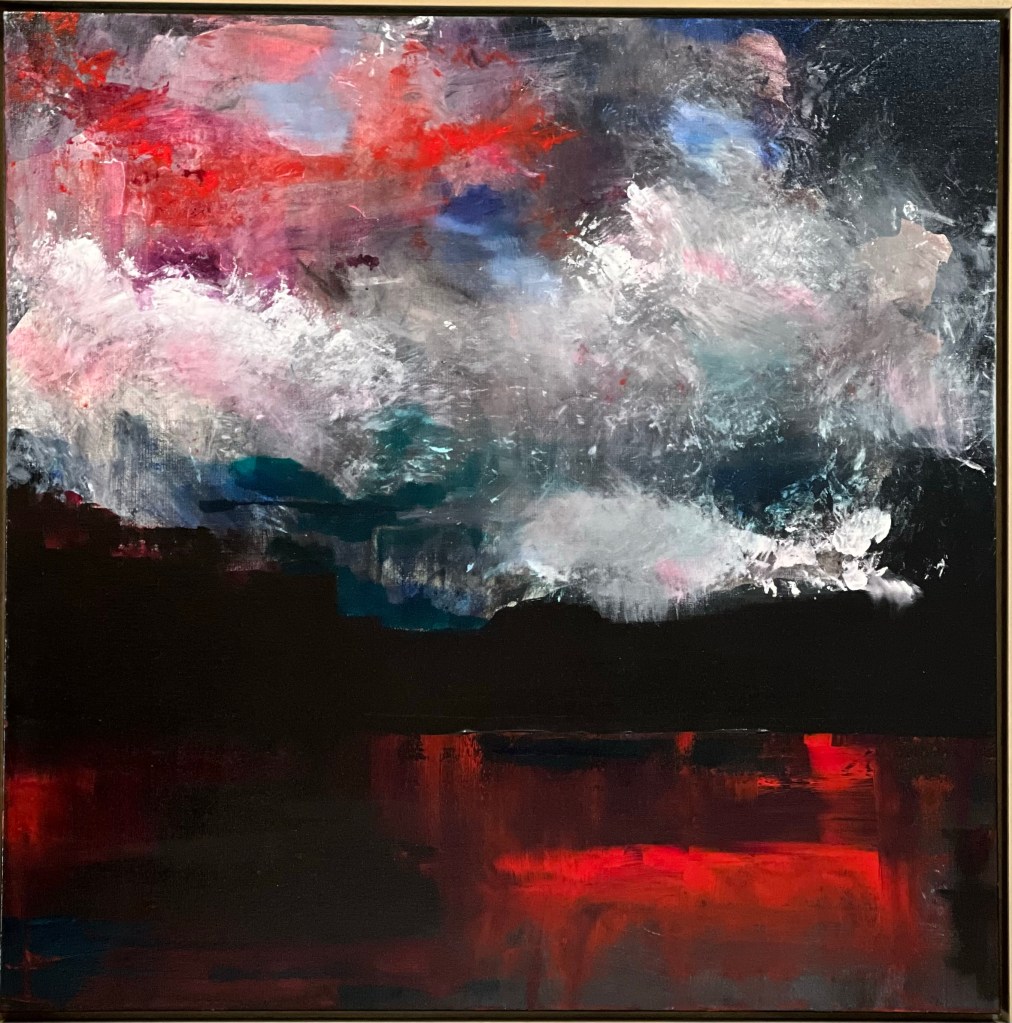 The very first time I saw this painting by my friend Amber Voorhies, I felt an instant connection to it. It was like she had gotten into my head and painted my emotions. Deep and dark, roiling – moving into light, airy hope. I asked her about it several times over the course of a few months, until finally, when I could not stop thinking about it, I bought it and brought it home with me.