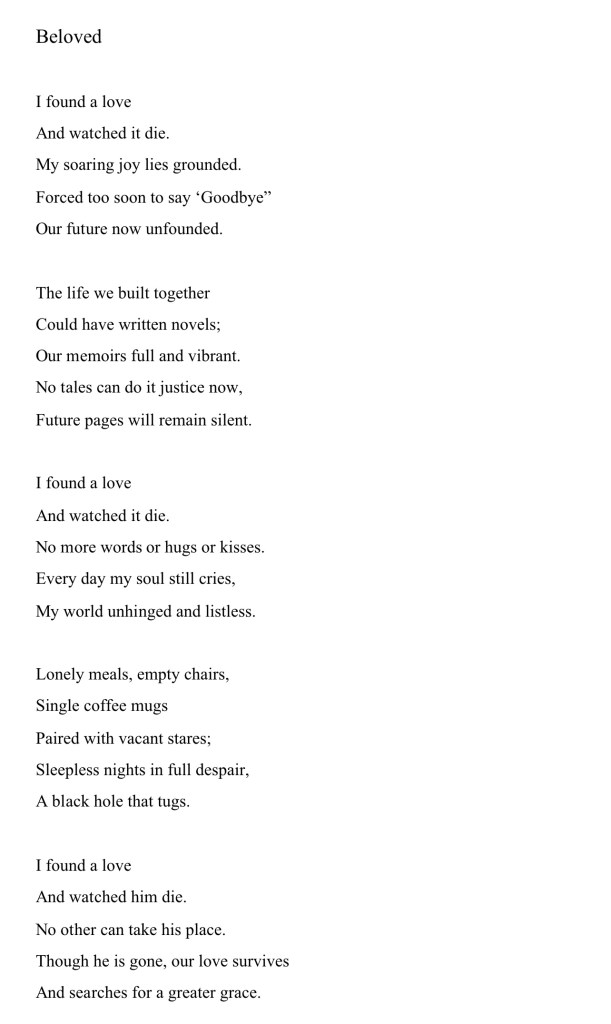 This project has been one more step in my journey through grief. I am grateful for the friends that have traveled with me and the lessons of love I am learning on the way.